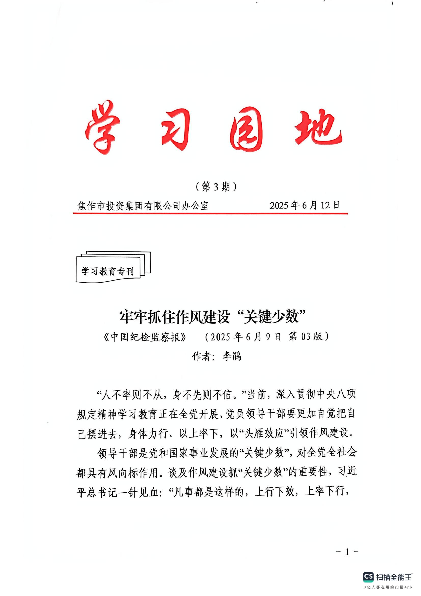 《牢牢抓住作風(fēng)建設“關(guān)鍵少數”》